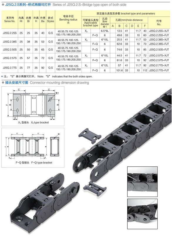 拖鏈尺寸:內徑高度*內徑寬度(毫米)